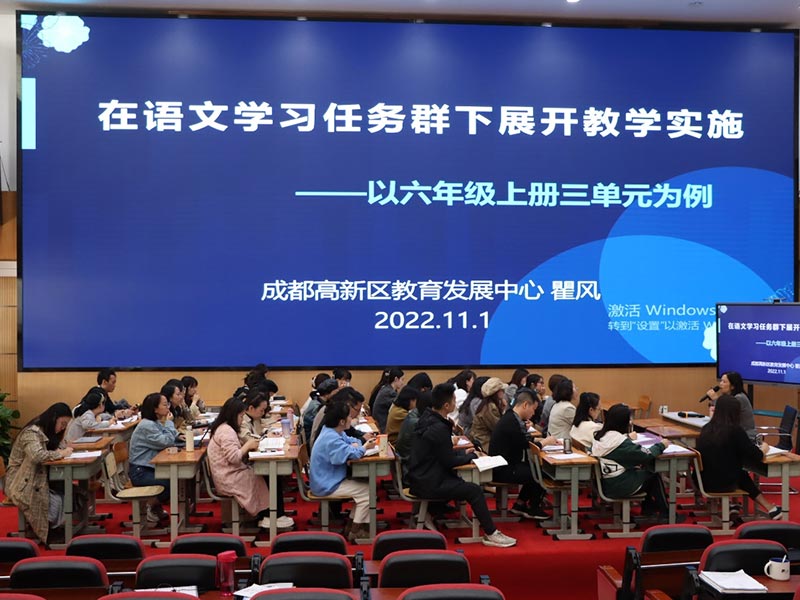 11月1日,全体语文教师齐聚一堂,开展以“聚焦语文核心素养,探索单元整体设计”为主题的教研活动,并邀请了高新区教研员瞿风老师做专题指导。?