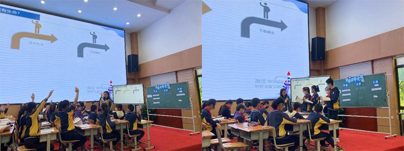 刘小娥老师和同学一起探索《宇宙生命之谜》。刘老师首先引导学生整体梳理生命存在的条件,接着发布“火星是否有生命”的探究任务,通过“读课文”“提信息”“看视频”的方式对结论进行辩证分析。整堂课,启趣思法,思维的火花在课堂绽放。?